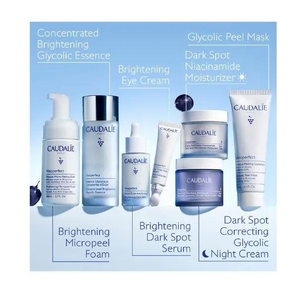 Βινιφερίνη: Πατενταρισμένο συστατικό της Caudalie που προέρχεται από χυμό αμπελιού και προσφέρει εξαιρετική δράση κατά των κηλίδων, πιο αποτελεσματική από τη βιταμίνη C και από τη Νιασιναμίδη.