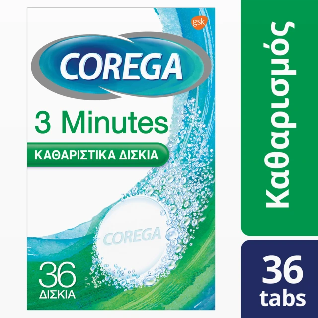 Corega 3 Minutes Καθαριστικά Δισκία για Τεχνητή Οδοντοστοιχία 36 δισκία