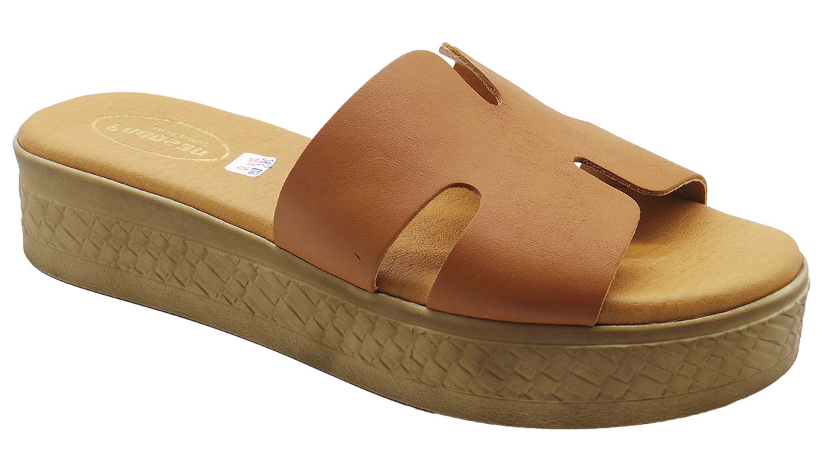 Ανατομική δερμάτινη παντόφλα – πλατφόρμα σε χρώμα ταμπά. Πολύ μαλακό πέλμα. Ύψος σόλας 4εκ. Διατίθενται σε Νο 36 – 41.Ανατομική παντόφλα – πλατφόρμα σε χρώμα ταμπά.