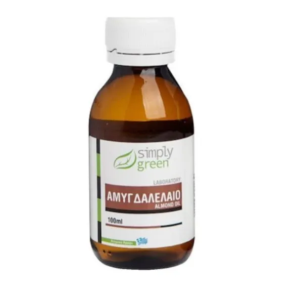 Το Simply Green Αμυγδαλέλαιο είναι για εξωτερική χρήση σε φιαλίδιο των 100ml. Tο αμυγδαλέλαιο με πηγή από έκθλιψη των καρπών της αμυγδαλιάς. Χρήσιμο παραδοσιακά στην αρωματοθεραπεία ως βασικός φορέας διάλυσης των αιθέριων ελαίων, αλλά και ως βασικό φυτικό λάδι για μασάζ.